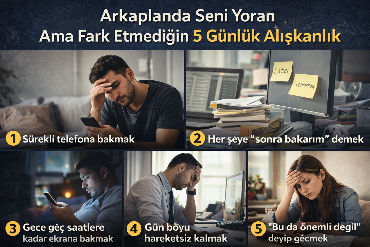 Bu alışkanlıklar küçük gibi görünür ama uzun vadede seni yorar. Fark etmek, değiştirmeye başlamak için ilk adımdır.